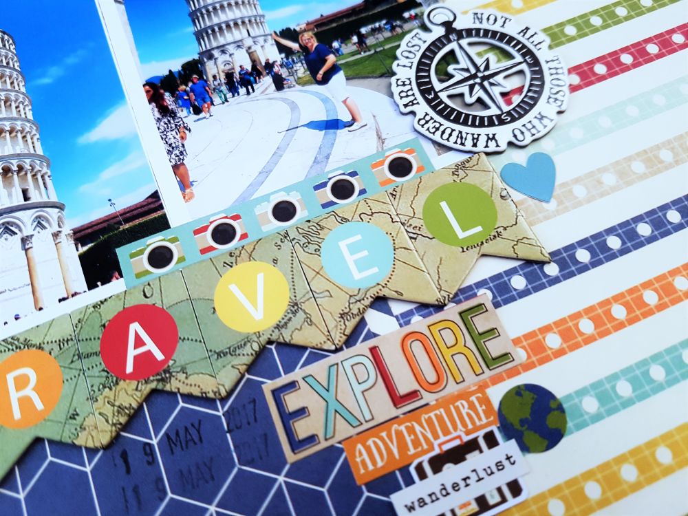 I mentioned in my my previous post that not every photo needs to have a story attached and this is where a variety of die-cuts and stickers make quick work of filling in the gaps with text and colour.